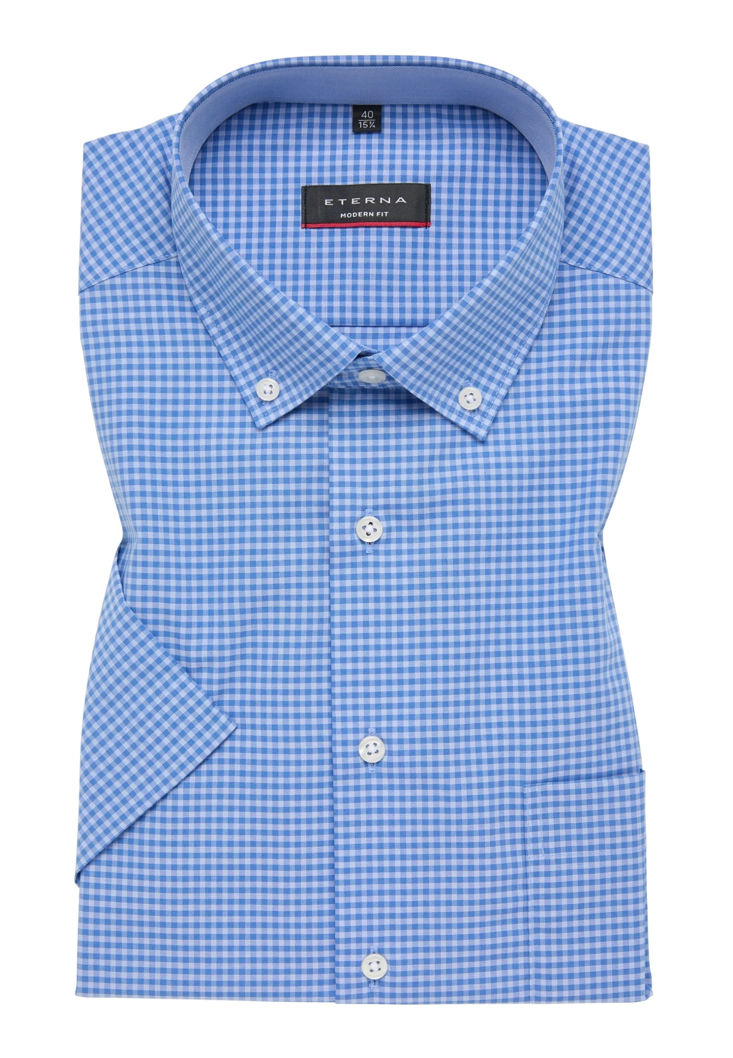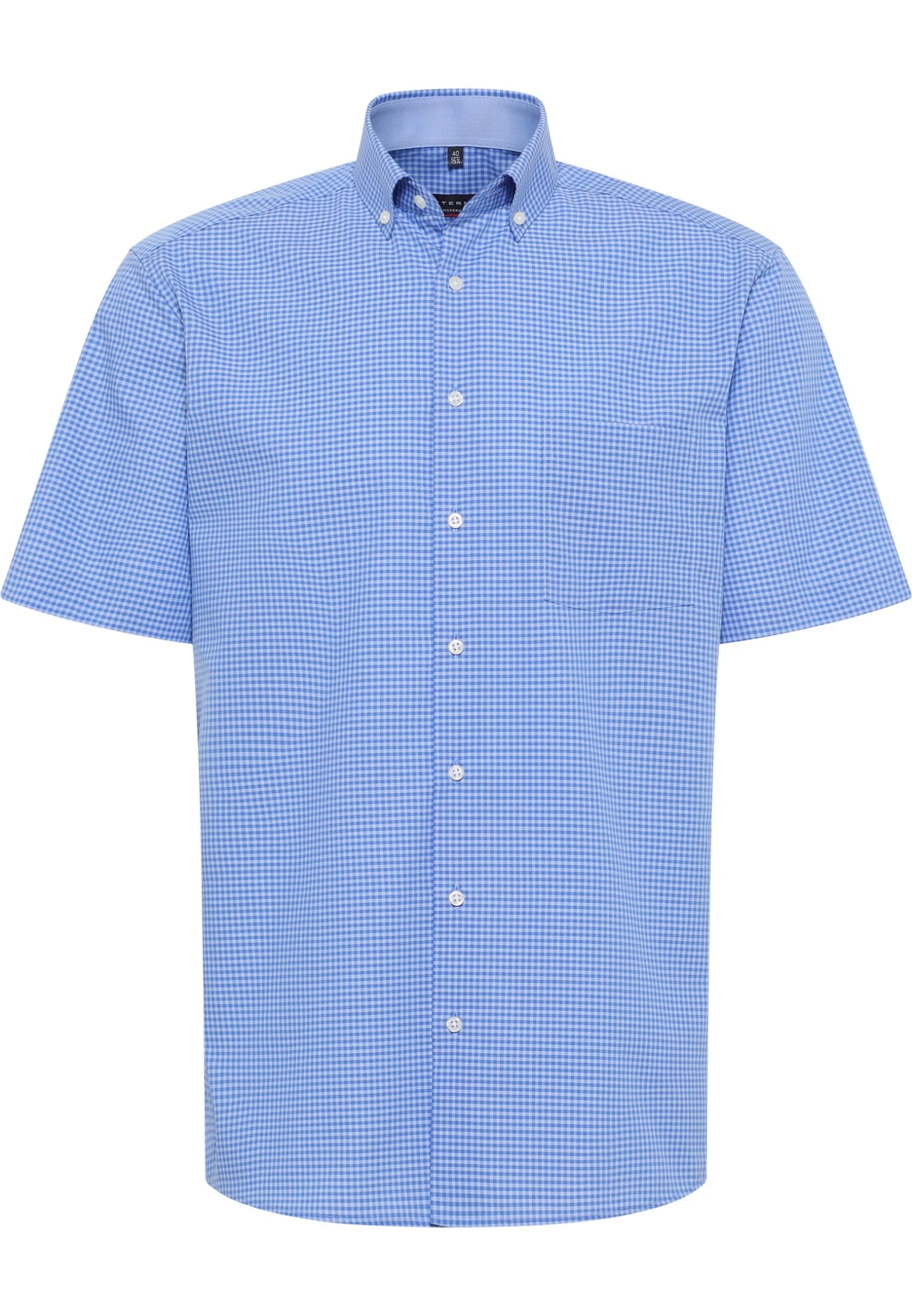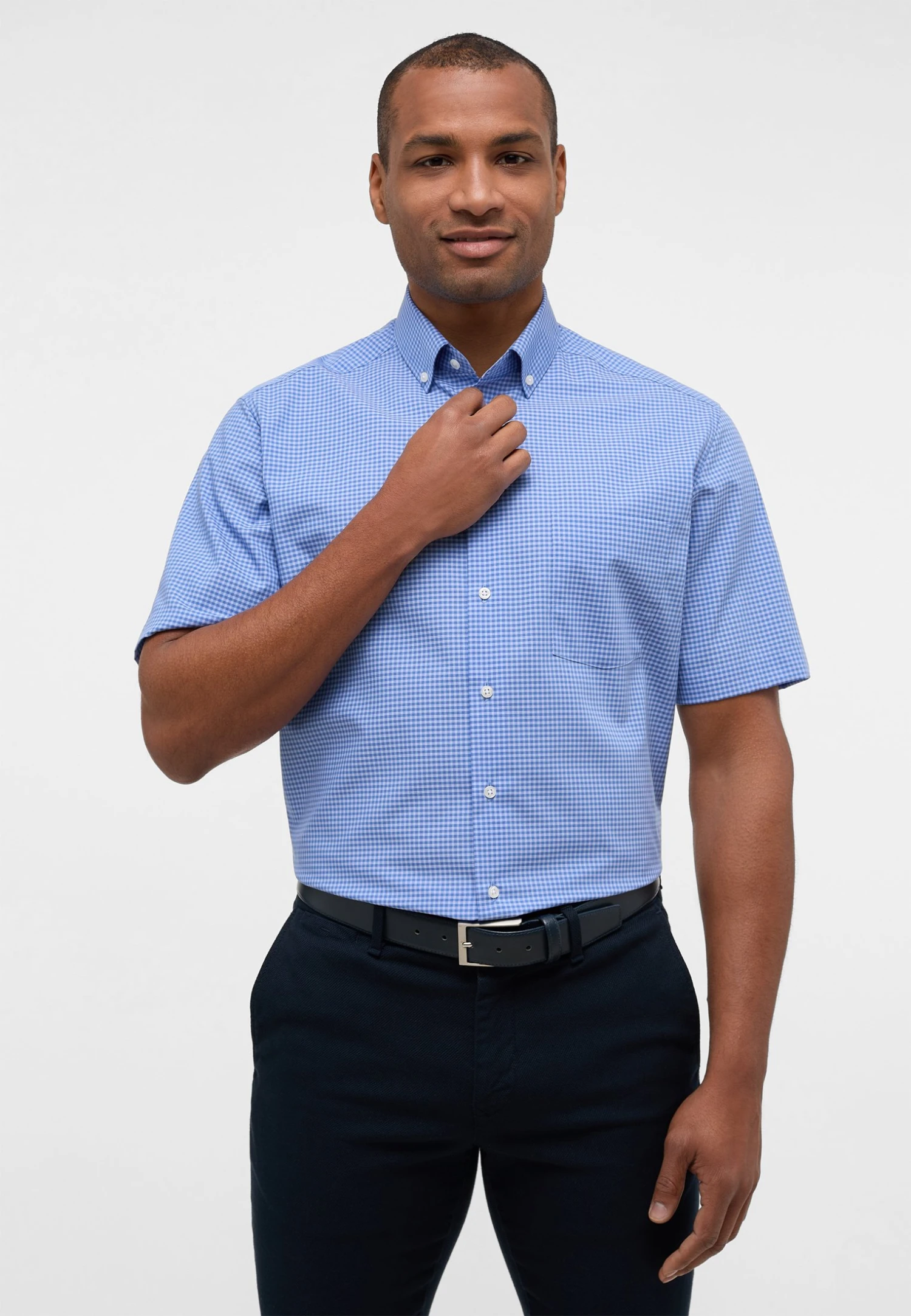 Eterna Kariertes Kurzarm Modern Fit – Overhemd – Denim