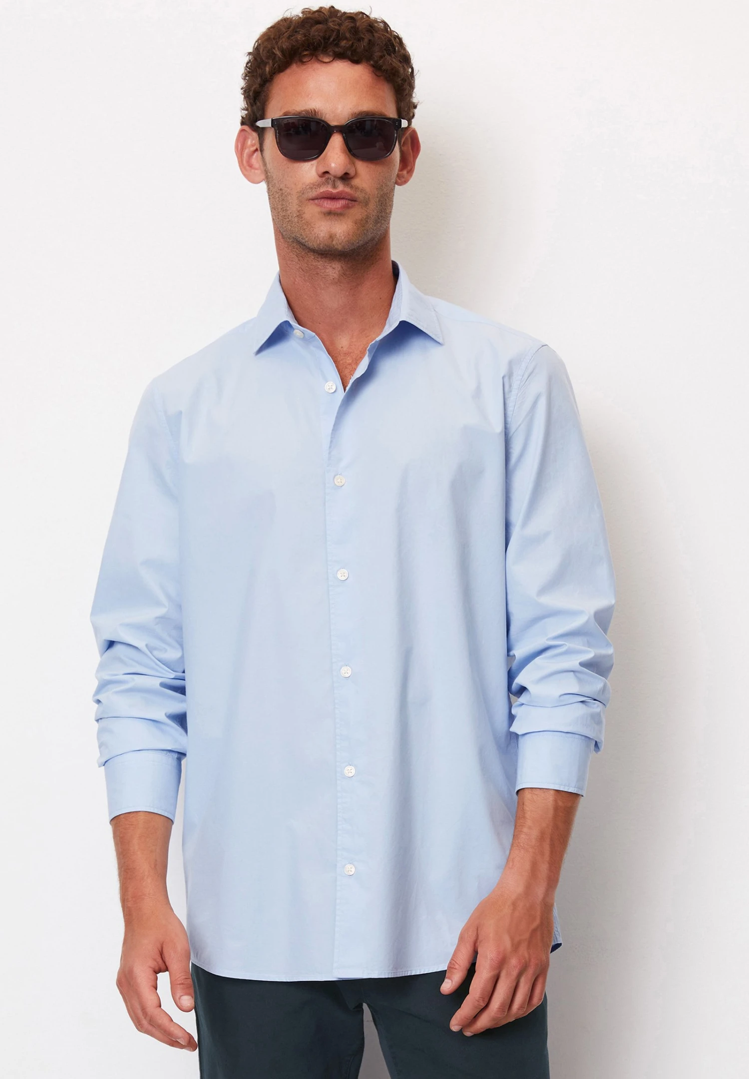 Marc O’Polo Langarm Shaped Aus Papertouch Popeline – Zakelijk Overhemd – Homestead Blue