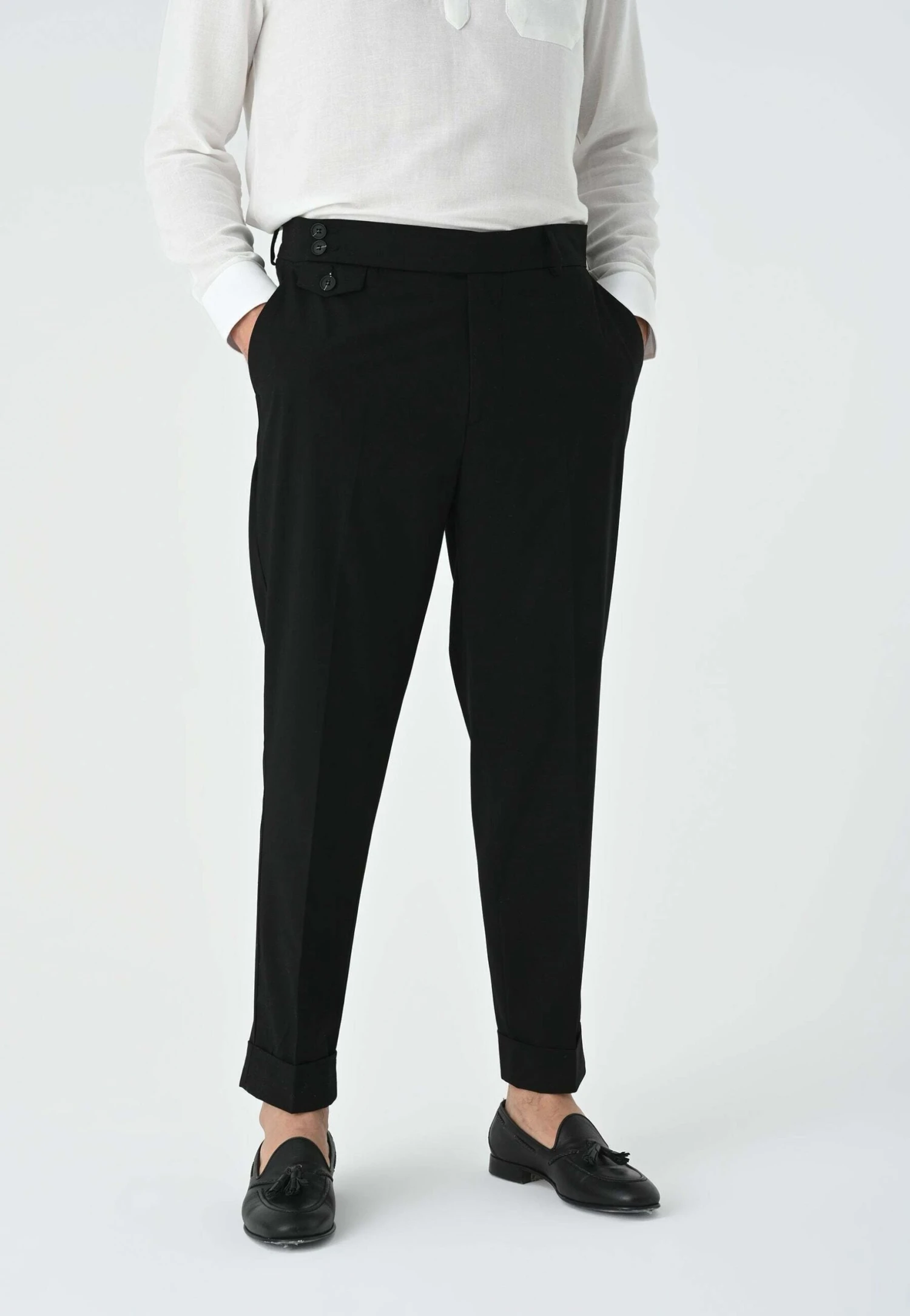 Pleated With Button Detailed – Broek – Black