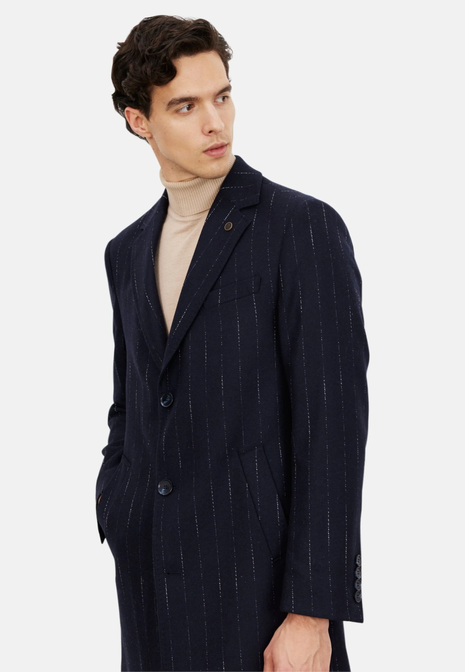 Standard Fit Figured – Halflange Jas – Navy Blue