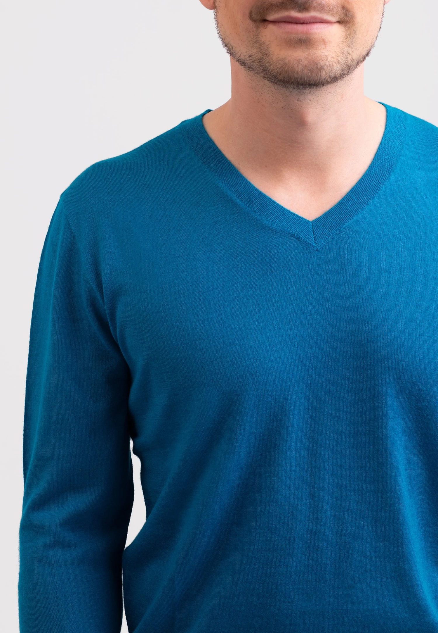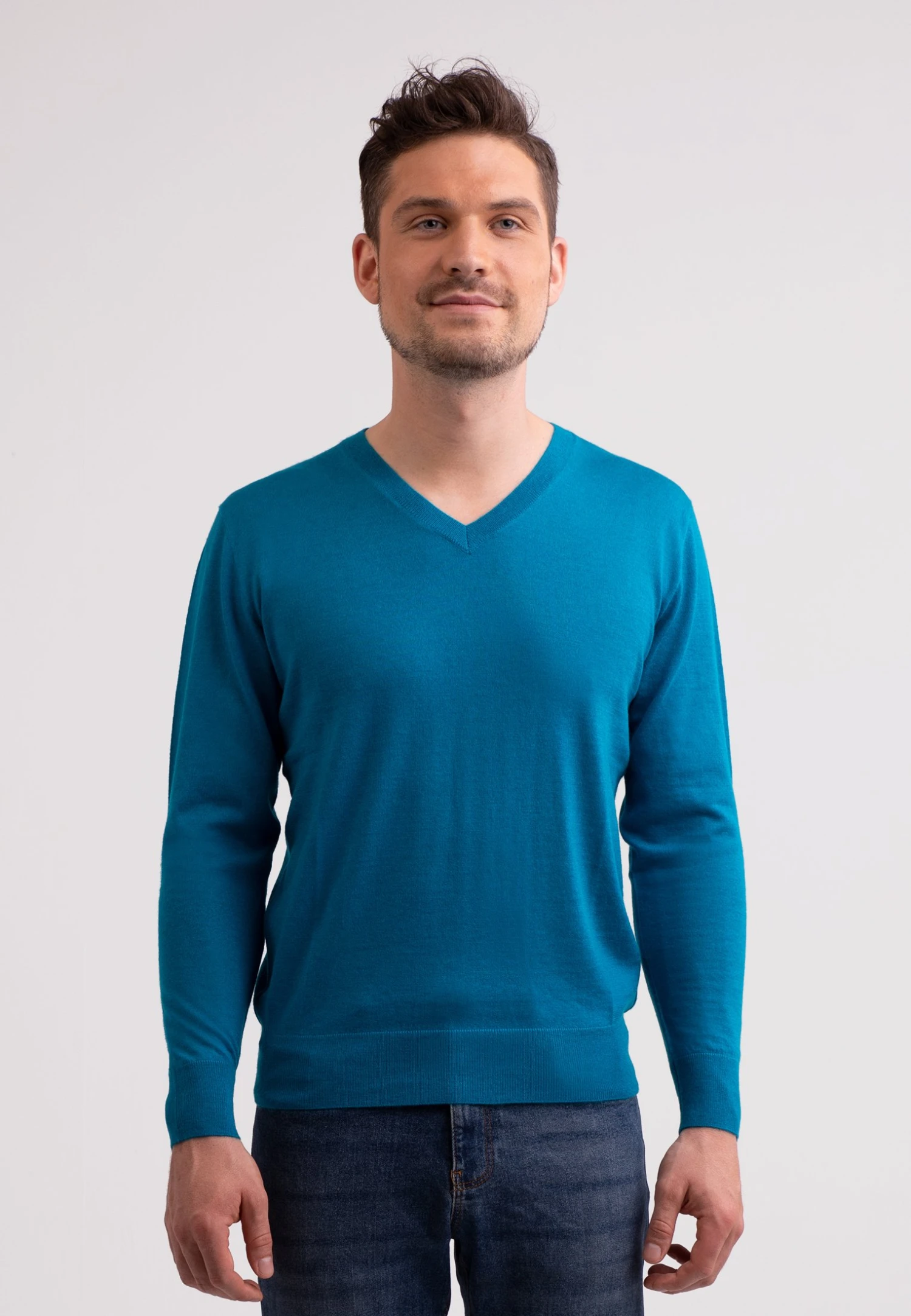 V-Ausschnitt- Trui – Mykonos Blau